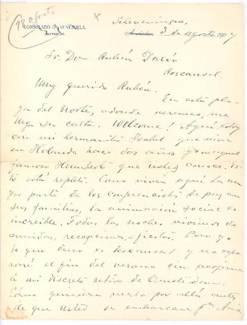 [Carta], 1901 ago. 5 Madrid, España <a> Rubén Darío [manuscrito] Francisco A. de Icaza.