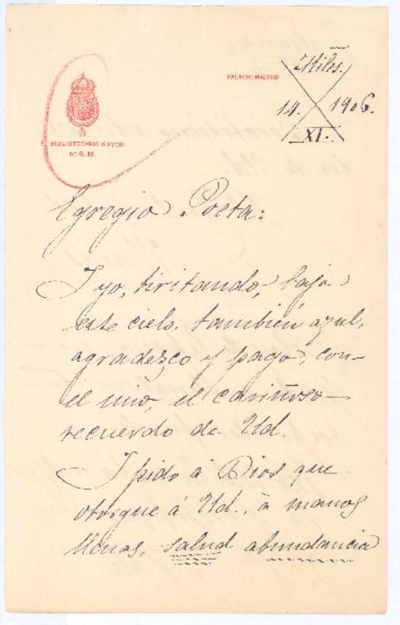 [Carta], c. 1914 España? <a> Rubén Darío [manuscrito] José Ingeniero.