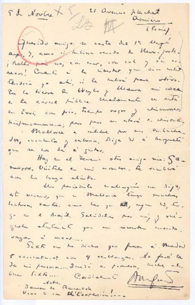 [Carta] [entre 1910 y 1916] nov. 8, París, Francia [a] Rubén Darío [manuscrito] Luis Bonafoux.