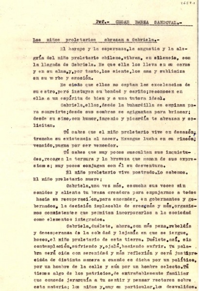 Baeza Sandoval, César - Mistral, Gabriela - Correspondencia - Manuscritos chilenos