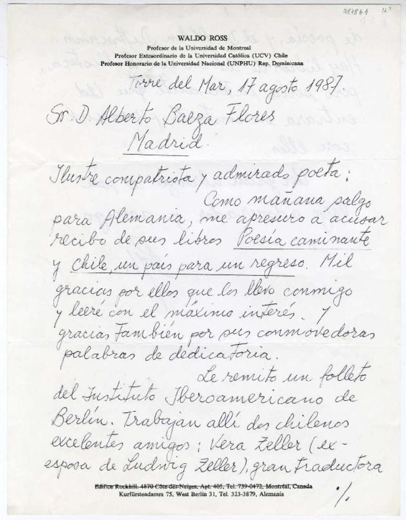 Ross, Waldo - Correspondencia - Autores chilenos - Manuscritos chilenos - Marín, Juan