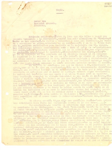Araneda, Exequiel - Puga de Benavente, Eulalia - Manuscritos chilenos - Correspondencia