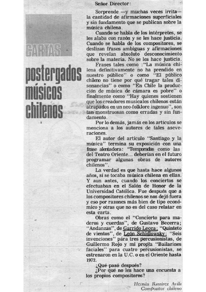 Entrevista - Chile - Lemann, Juan - Industria musical - Cartes M., Brunilda - Compositores