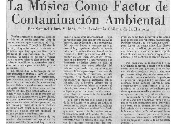 La Música Como Factor de Contaminación Ambiental. [artículo]