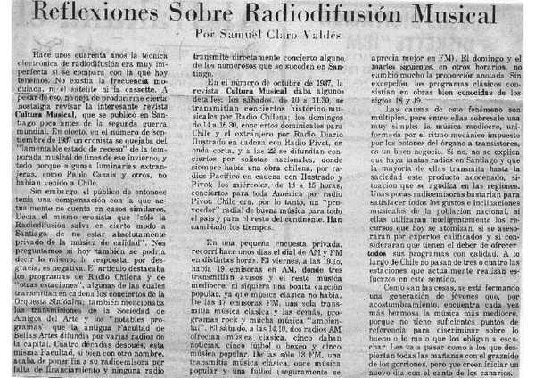 Reflexiones sobre Radiodifusión Musical. [artículo]