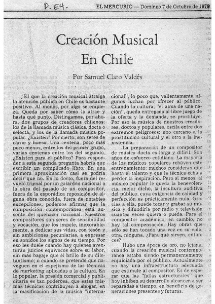 Música - Industria musical - Amenábar Ruiz, Juan Eduardo - Aspectos sociales - Claro Valdés, Samuel - Crítica musical