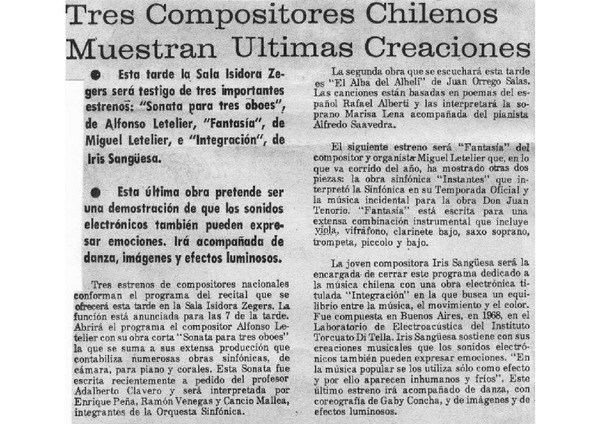 MÚSICA - EXTENSION CULTURAL - Savi, Elvira - Crítica musical - Conciertos - Música docta - Letelier, Carmen Luisa