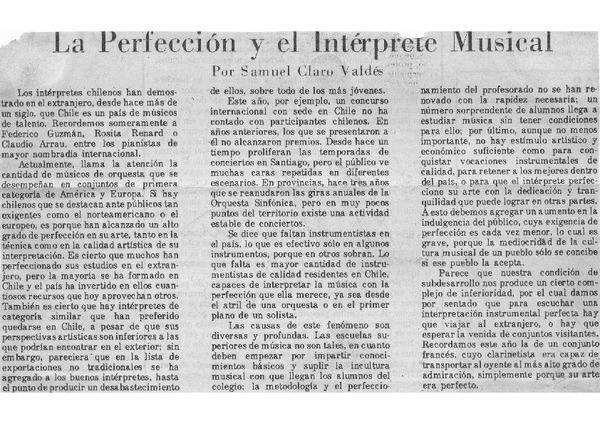 La Perfección y el intérprete Musical. [artículo]