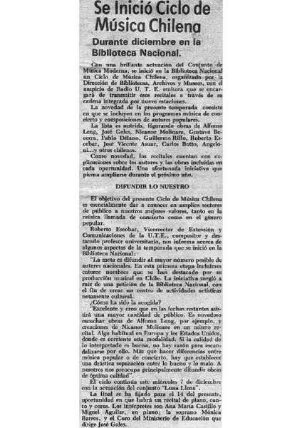 Guzmán, Lorna - De la Jara, Jaime - Vila, Cirilo - MÚSICA - EXTENSION CULTURAL - Merino, Luis - Savi, Elvira - Música docta - Araya, Carmen - Hernández, Viviana