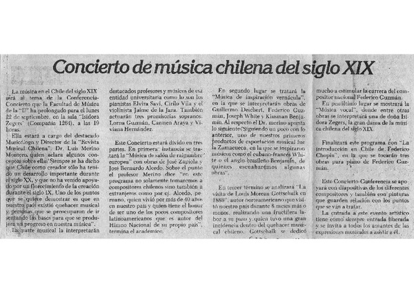 Concierto de música chilena del sigo XIX Esta tarde [artículo]