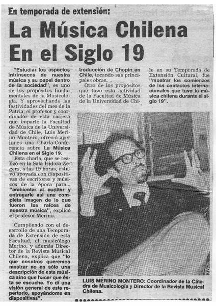 La Música Chilena en el Siglo 19 En Temporada de Extensión. [artículo]