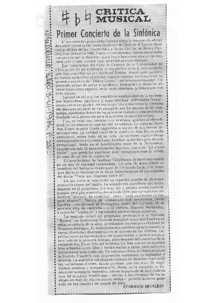 Fones, Mary Ann - Hernández, Augusto - Música docta - Conciertos - Crítica musical - Carewe, John - Gacitúa, Oscar - Villablanca, Santiago - De la Maza, Mariano - Kistler, Richard