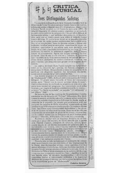 Tres distinguidas solistas Crítica Musical [artículo]