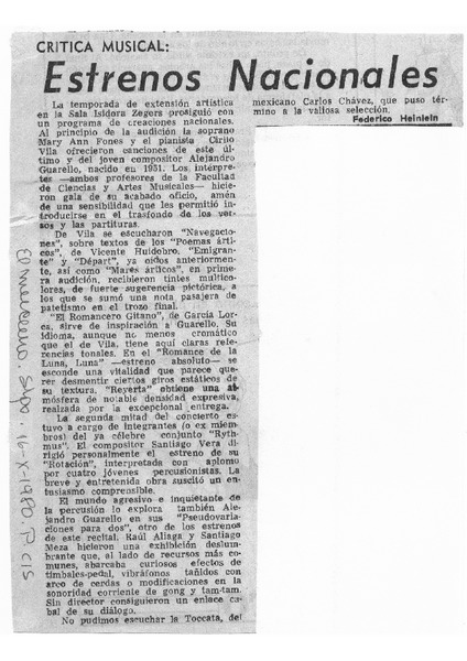 Estrenos Nacionales Crítica Musical [artículo]