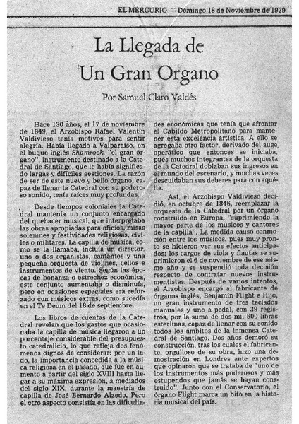 La Llegada de Un Gran Organo [artículo]