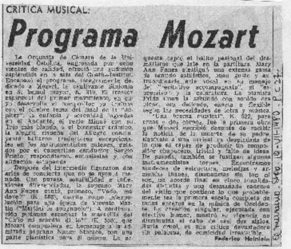 Conciertos - Música docta - Crítica musical - Tevah, Victor - Fones, Mary Ann - Letelier, Carmen Luisa - López Oyanedel, Enrique - Conn, Frida - Ansaldi, Fernando - Quesada, Francisco - Fuentes, Arnaldo - Harms, Alberto - Lena, Marisa - Peña. Enrique