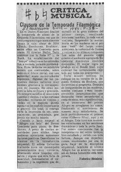 Clausura de la temporada filarmónica Crítica musical [artículo]