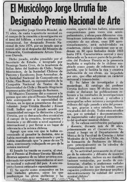 Premio Nacional de Arte (Chile) - Urrutia, Jorge - Concursos - Compositores - Arte chileno