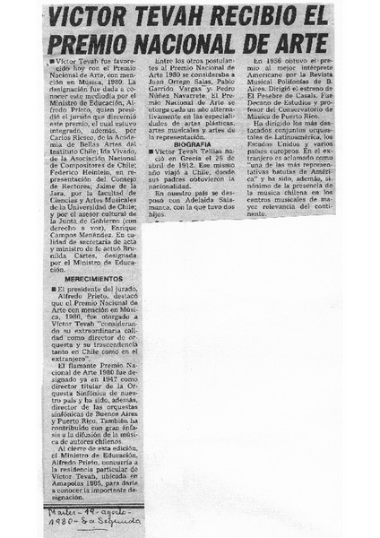 Música docta - Premio Nacional de Arte (Chile) - Tevah, Victor