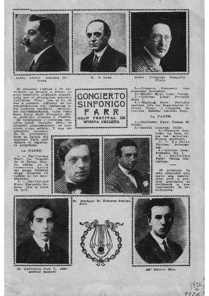 Farr Latorre, Guillermo - Bisquertt, Próspero - Soro, Enrique - Conciertos (Orquesta) - Crónica Musical - Aracena Infanta, Aníbal
