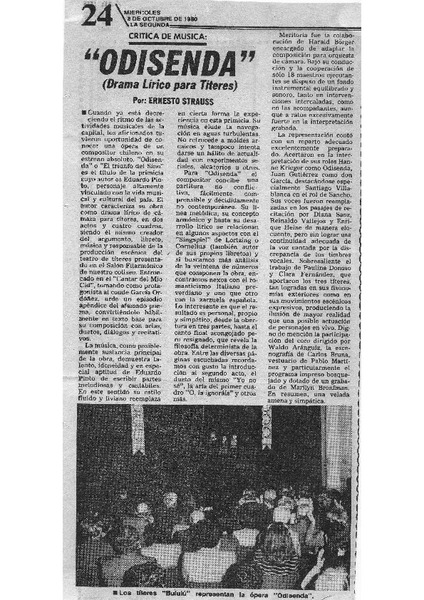 "Odisenda" (drama lírico para títeres) Crítica de música [artículo]