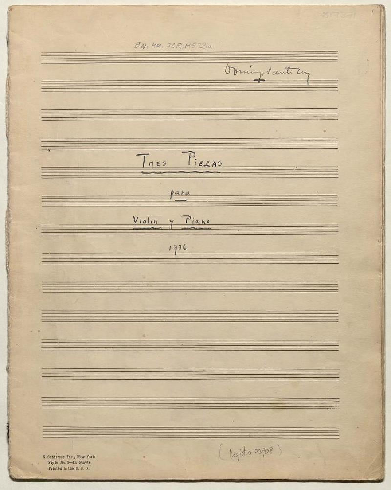 Tres Piezas para Violín y Piano. Op. 15 [impreso]Domingo Santa Cruz