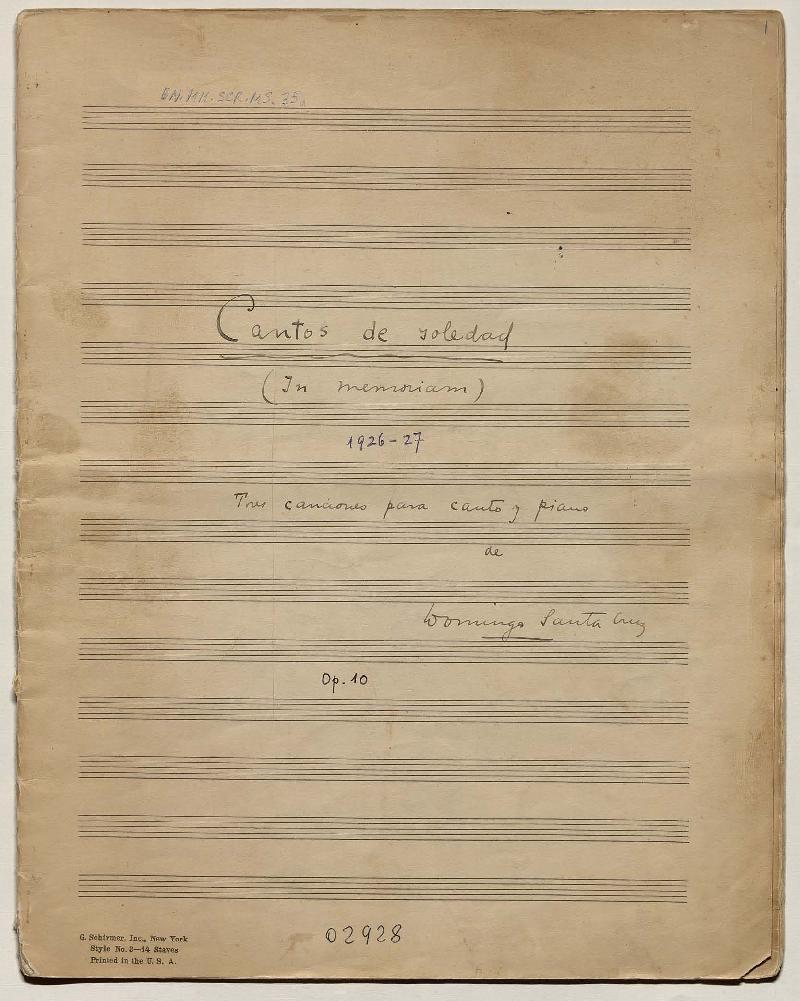 Cantos de soledad (In memoriam) - Tres canciones para canto y piano - Op.10 Domingo Santa Cruz.