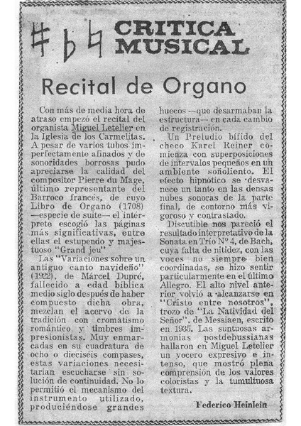 Letelier, Miguel - Compositores - Crítica musical - Heinlein Funcke, Federico