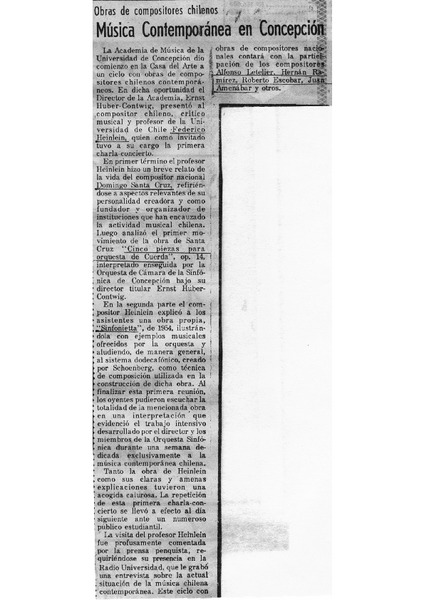 Tres Compositores Chilenos Muestran Últimas Creaciones. [artículo]