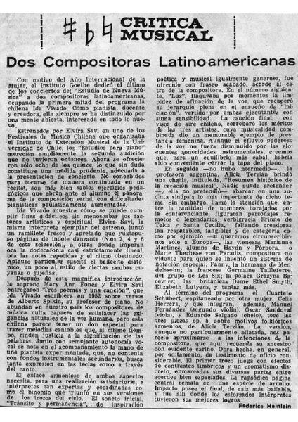 Villaroel, Hugo - Música docta - Conciertos - Crítica musical - Compositores - Tevah, Victor - Reyes, Aida - Lira, Juan Eduardo - Lena, Marisa - Lara Bravo, Fernando
