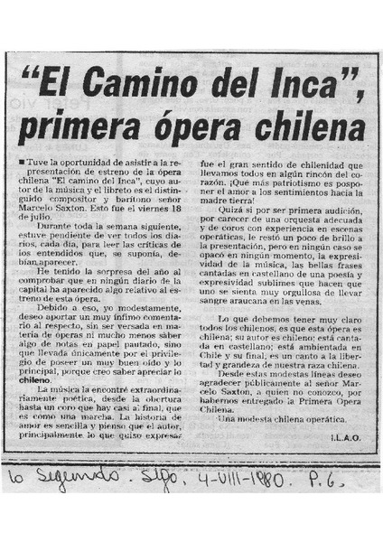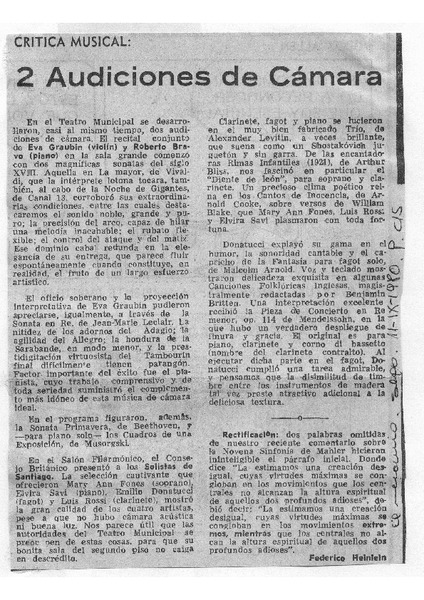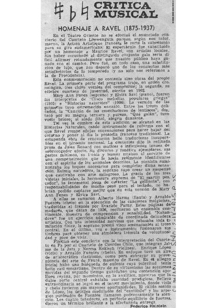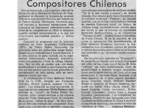 Quilapí, José - Douatte, Roland - Gutierrez, Juan - Délano, Laura - Crítica musical - Conciertos - Música docta - Araya, Graciela - González M., Luis