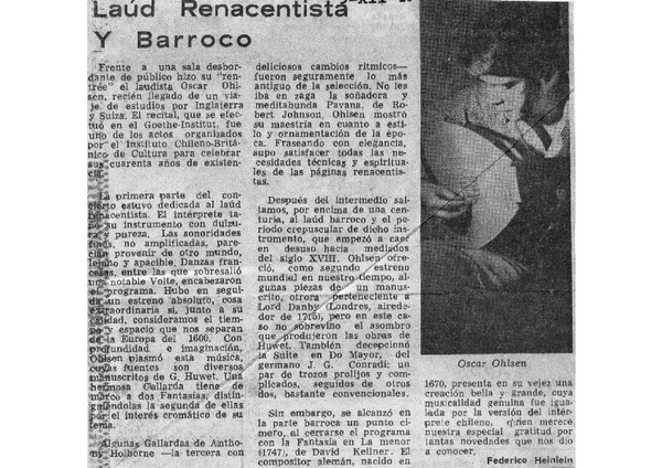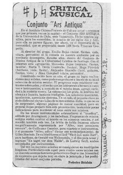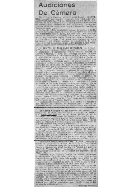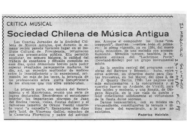 Valdes, Margarita - Conjunto Música Antigua Universidad Católica - Marianov, Jorge - Heinlein Funcke, Federico - Soublette, Sylvia - Savi, Elvira - Crítica musical - cantante