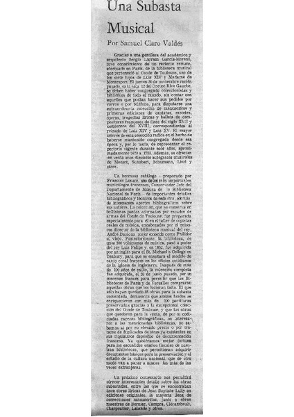 Música docta - Conciertos - Crítica musical - Claro Valdés, Samuel - Ballet - Lemann, Juan - Beltramí, Fernando - Soza, Ana
