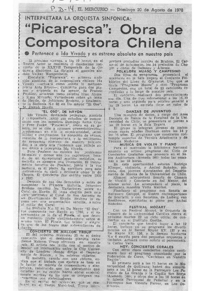 Reyes, Aida - Música docta - Conciertos - Crítica musical - Tevah, Victor - Villaroel, Hugo - De la Maza, Mariano - Vásquez, Patricia - Mastrango, Horacio