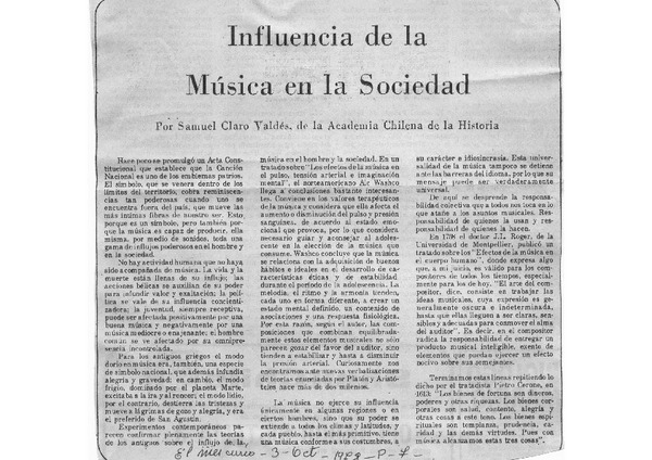 Aspectos sociales - Música - Claro Valdés, Samuel