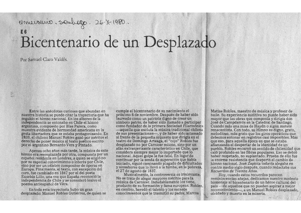 Una respuesta musical le tiene el siglo XX a O'Higgins. Estreno de la primera misa chilena para orquesta y coro en el Templo Votivo de Maipú. [artículo]