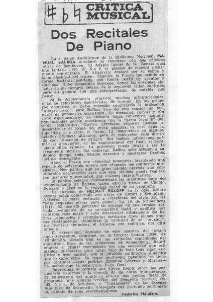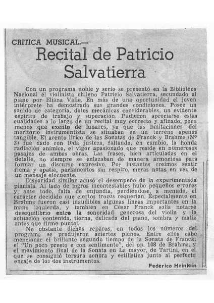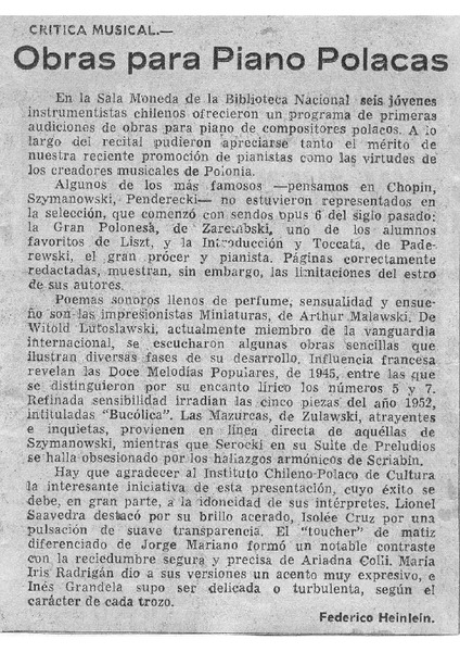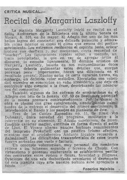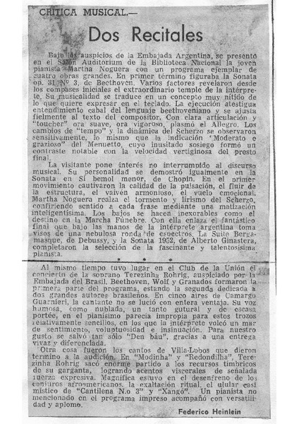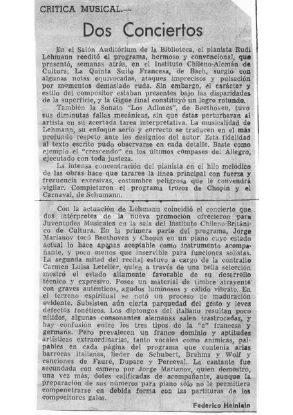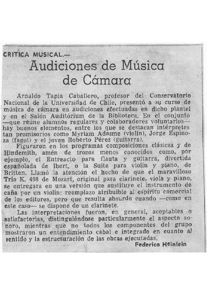 Crítica musical - Heinlein Funcke, Federico - Tapia Caballero, Arnaldo