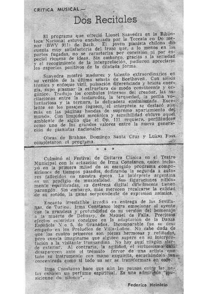 Música docta - Constanzo, Irma - Yepes, Narciso - Crítica musical - Conciertos