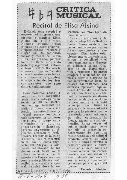 Música docta - Alsina, Elisa - PIANISTAS - Crítica musical - Conciertos