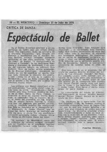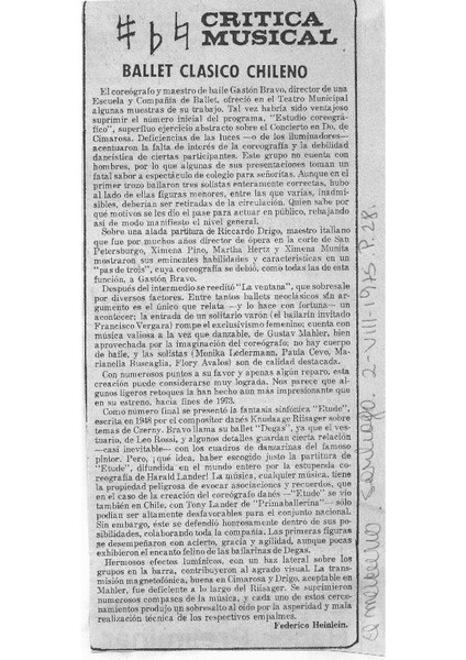 Ballet Clásico Chileno Crítica Musical [artículo]