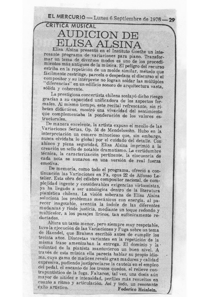 Audición de Elisa Alsina Crítica Musical [artículo]