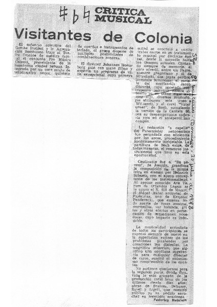 Hoemberg, Johannes - Pro Música Colonia - Crítica musical - Conciertos - Música docta