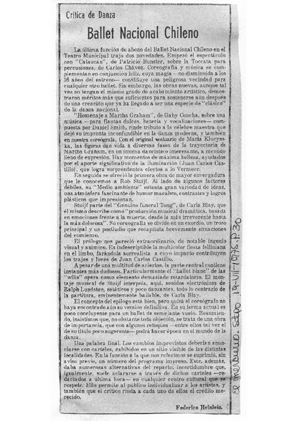 Ballet Nacional Chileno Crítica de Ballet [artículo]