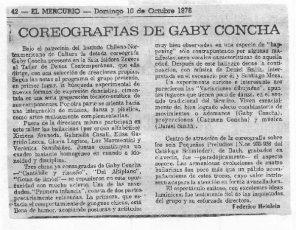 Crítica de danza - Quesada, Francisco - González, Roberto - Ansaldi, Fernando - Conn, Frida - Letelier, Carmen Luisa - Conciertos - Música docta - Poveda, Pedro