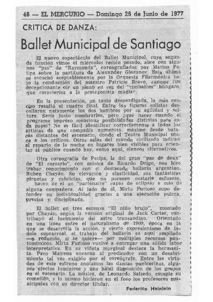 Ballet Municipal de Santiago Crítica de danza [artículo]