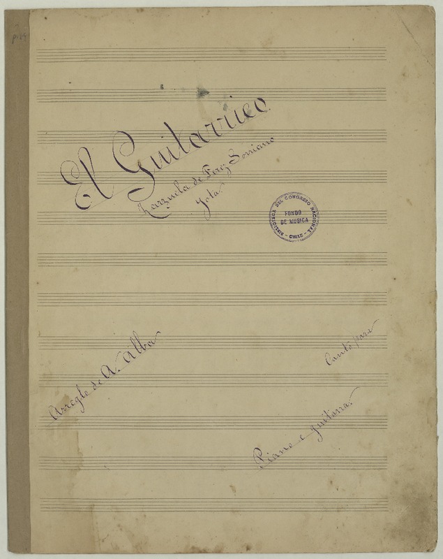 El Guitarrico zarzuela ; jota para canto y guitarra [música] : A. Pérez Soriano ; arreglada por Antonio Alba.