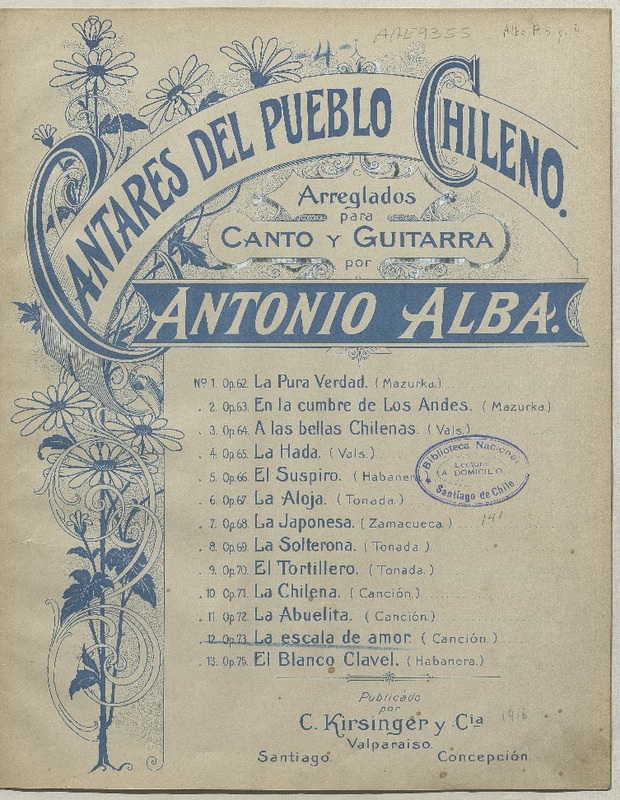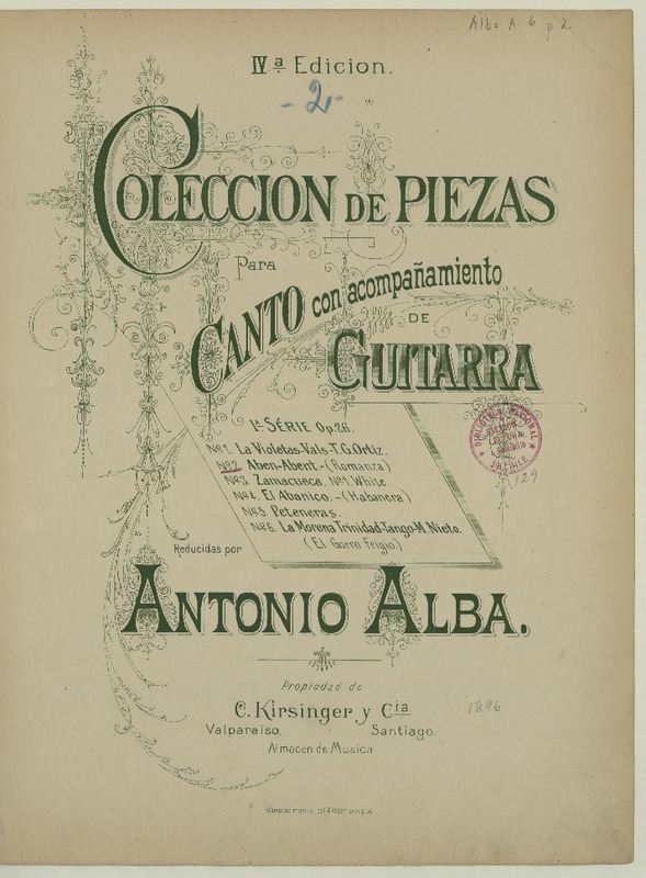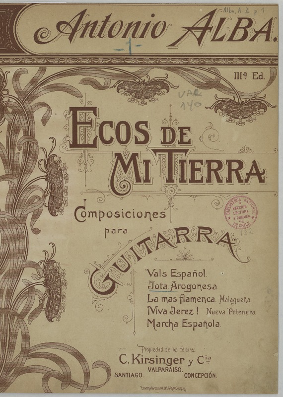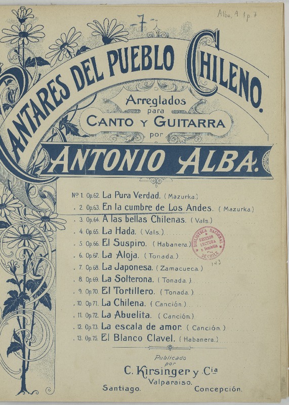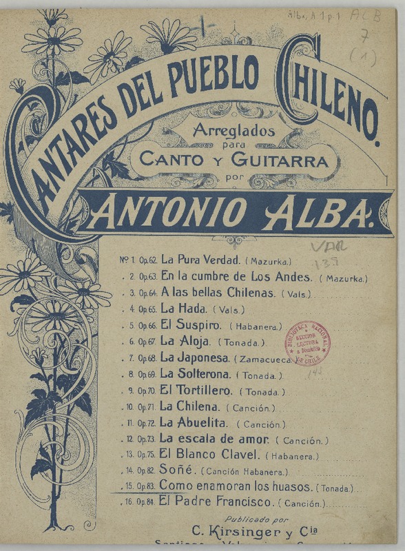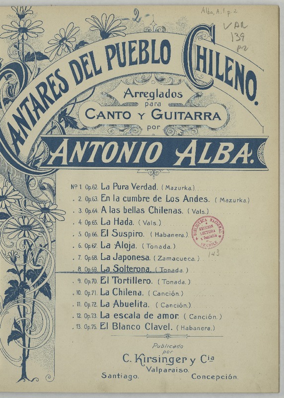 La Chilena canción [para] canto y guitarra [música] : arreglada por Antonio Alba.