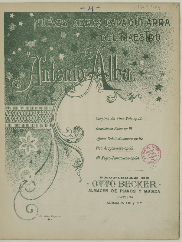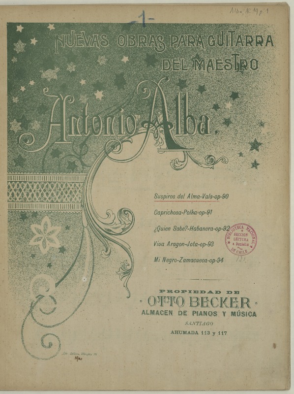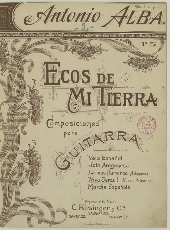 El suspiro tonada [para canto y guitarra] [música] : arreglada por A. Alba.