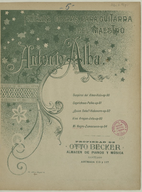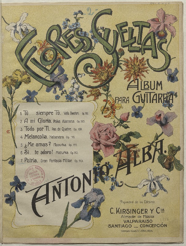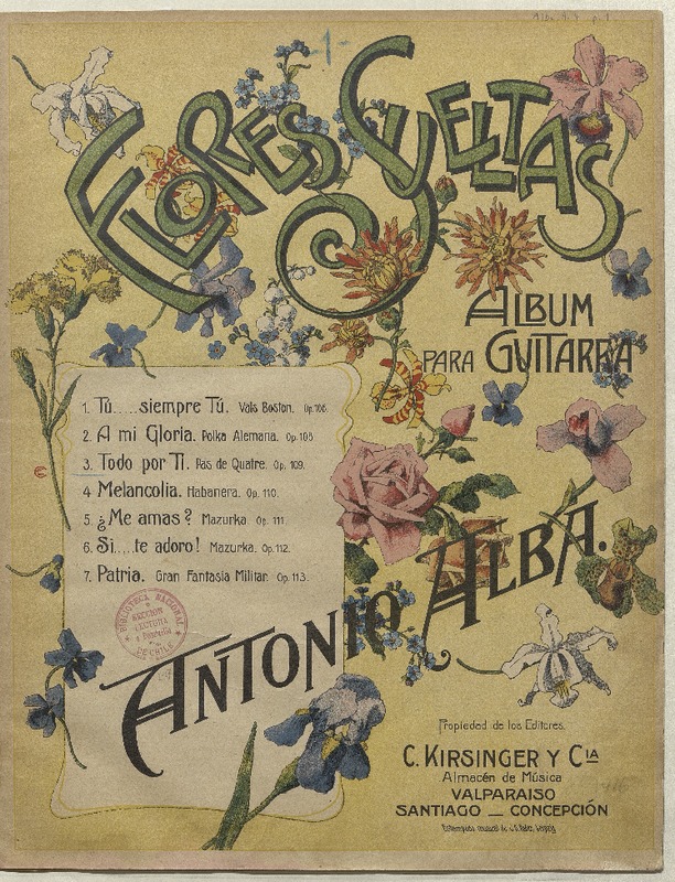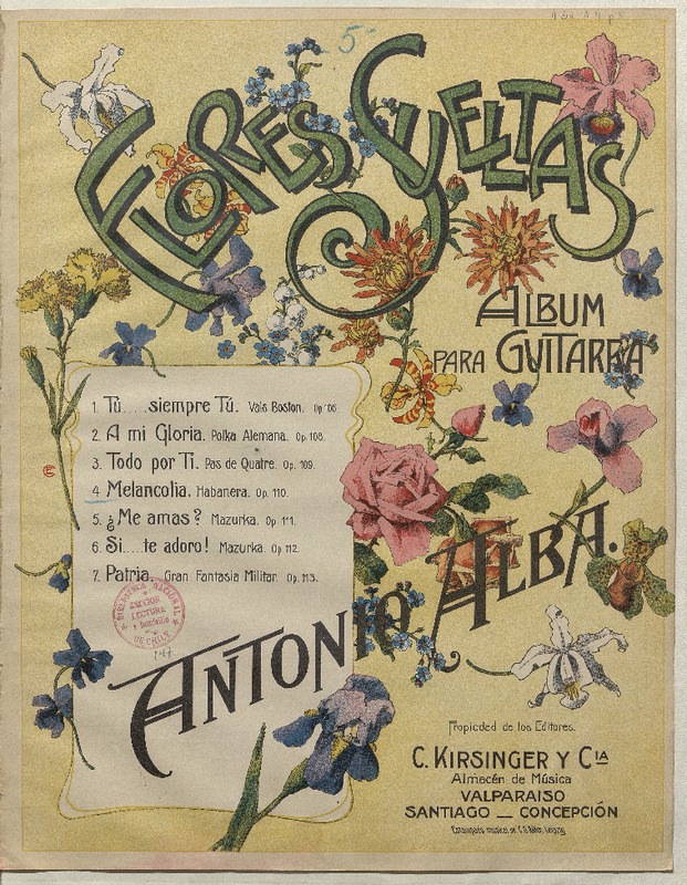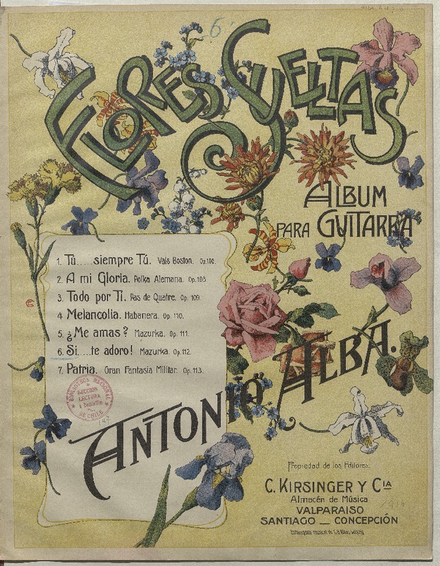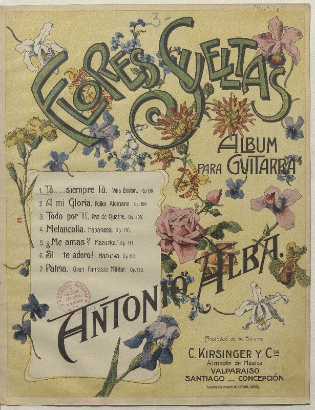 A las bellas chilenas vals [para canto y guitarra] [música] arreglada por A. Alba.
