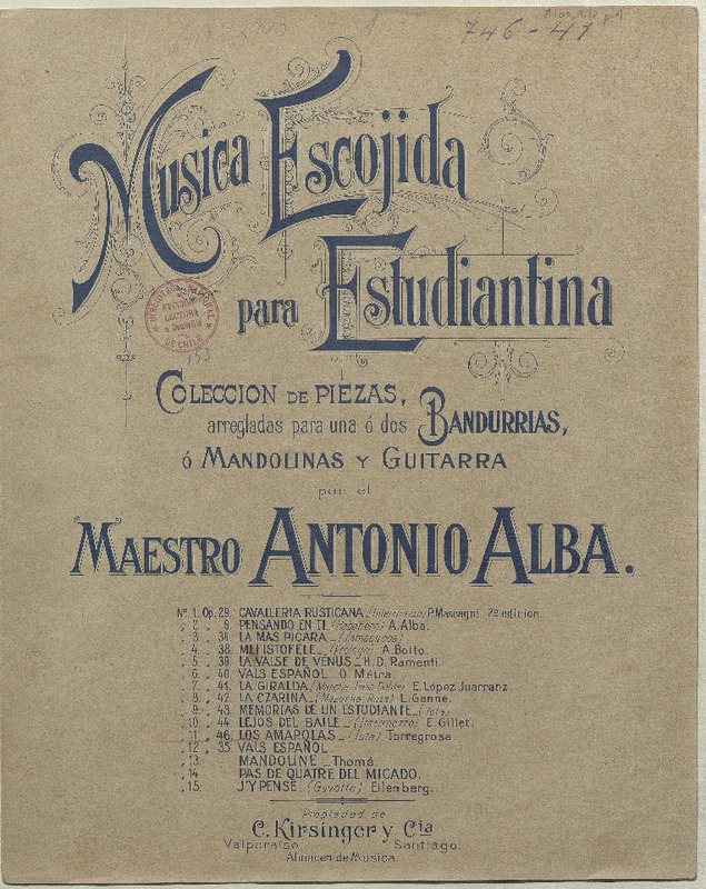 La maś pícara zamacueca ; arreglada para una o dos bandurrias o mandolinas y guitarra [música] : Antonio Alba.